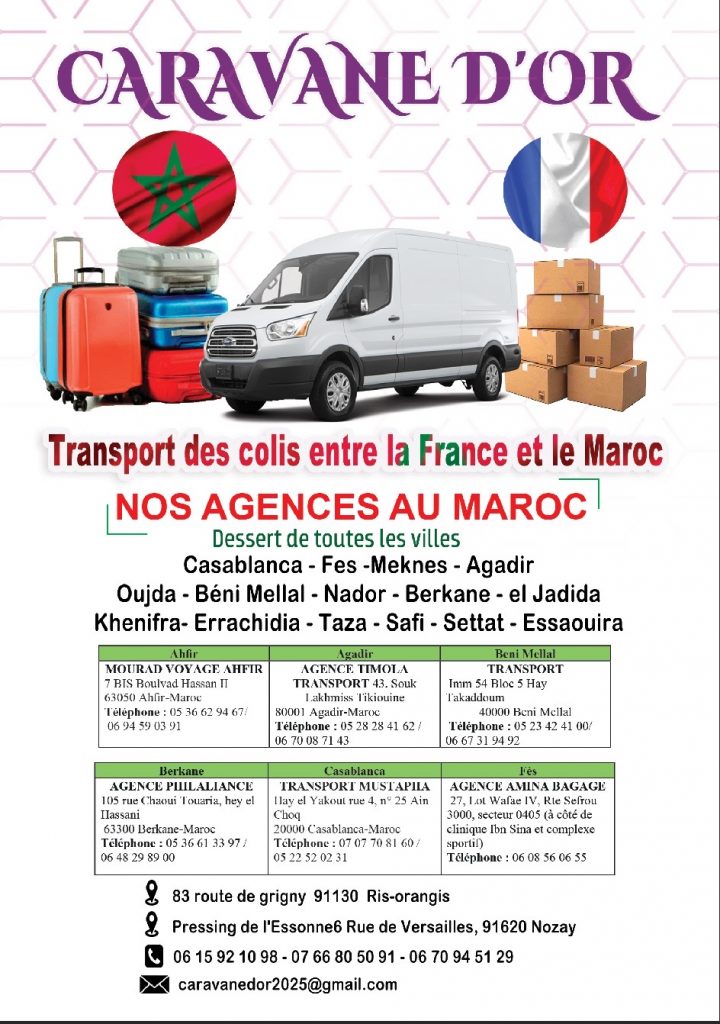 Livraison France-Maroc avec Caravane d'Or Transport National et International :